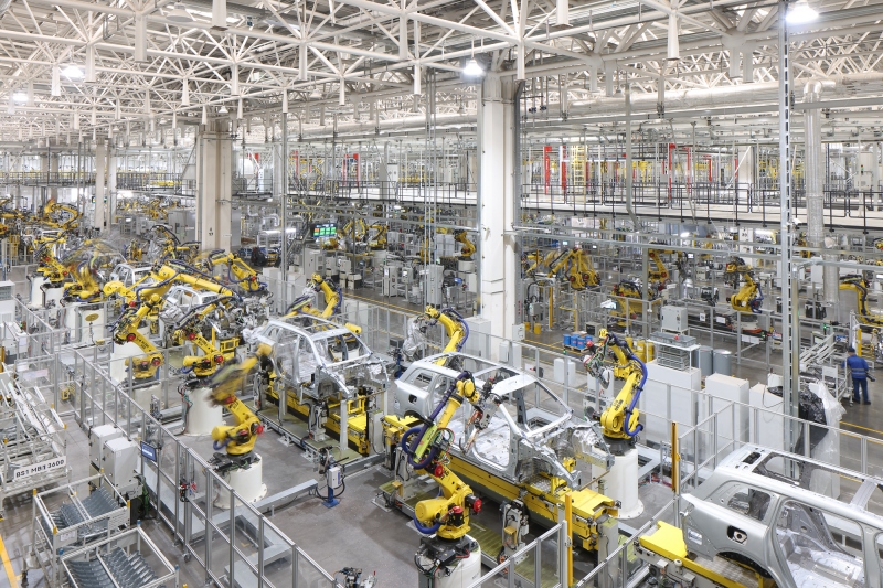 正在赛力斯超等工场里,机械臂不断舞动、运输机械人来回穿越,一辆辆问界M9正正在进行下线前最初的部件拆卸。这座超等工场内,1600多台智能终端、3000多台机械人协同运做,实现了焊接过程从动化率100%、喷涂从动化率100%、全从动智能伺服压机线%。
