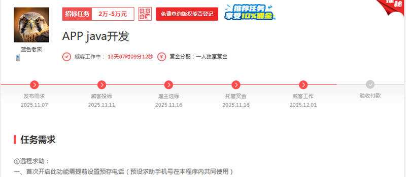 入驻一品威客平台后,龙福创意凭仗“小而精”的全流程闭环办事能力快速崭露头角。定向保举了取团队能力高度婚配的项目。王聪基于正在非标产物设想中堆集的精准逻辑取布局优化经验,针对求帮德律风轮回拨打、巡查守护语音识别等焦点功能,提出了高度贴合场景的处理方案。