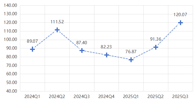 2025年三季度,市场影响力指数翘尾式增加,指数值环比增加31。43%至120。07点,较上年同期增加37。38%。
