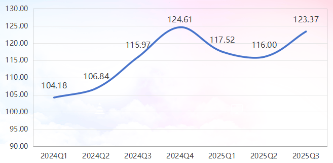 2025年三季度,科技立异指数调头上行,指数值为123。37点,环比增加6。35%,较上年同期增加6。38%。
