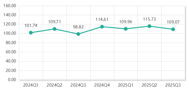2025年三季度,长沙工程机械财产季候性调整,财产成长指数全体处于高位回调,指数值为109。07点,环比下降5。75%,较上年同期增加10。37%。